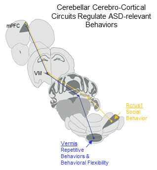 Elyza Kelly, Fantao Meng, Hirofumi Fujita, Felipe Morgado, Yasaman Kazemi, Laura C. Rice, Chongyu Ren, Christine Ochoa Escamilla, Jennifer M. Gibson, Sanaz Sajadi, Robert J. Pendry, Tommy Tan, Jacob Ellegood, M. Albert Basson, Randy D. Blakely, Scott V. Dindot, Christelle Golzio, Maureen K. Hahn, Nicholas Katsanis, Diane M. Robins, Jill L. Silverman, Karun K. Singh, Rachel Wevrick, Margot J. Taylor, Christopher Hammill, Evdokia Anagnostou, Brad E. Pfeiffer, Catherine J. Stoodley, Jason P. Lerch, Sascha du Lac, Peter T. Tsai. "Regulation of Autism-Relevant Behaviors by Cerebellar–Prefrontal Cortical Circuits." Nature Neuroscience (First published: July 13, 2020) DOI: 10.1038/s41593-020-0665-z